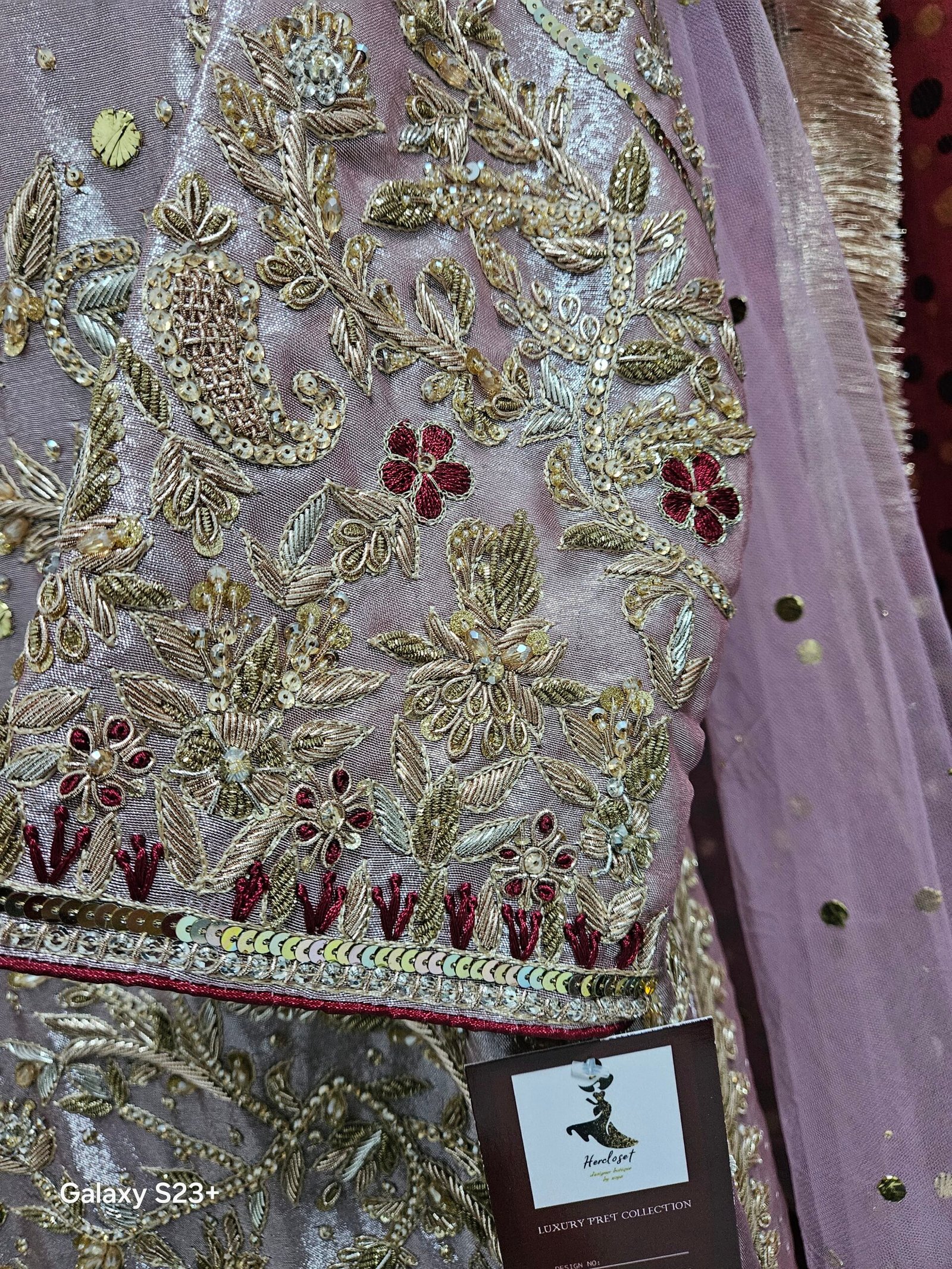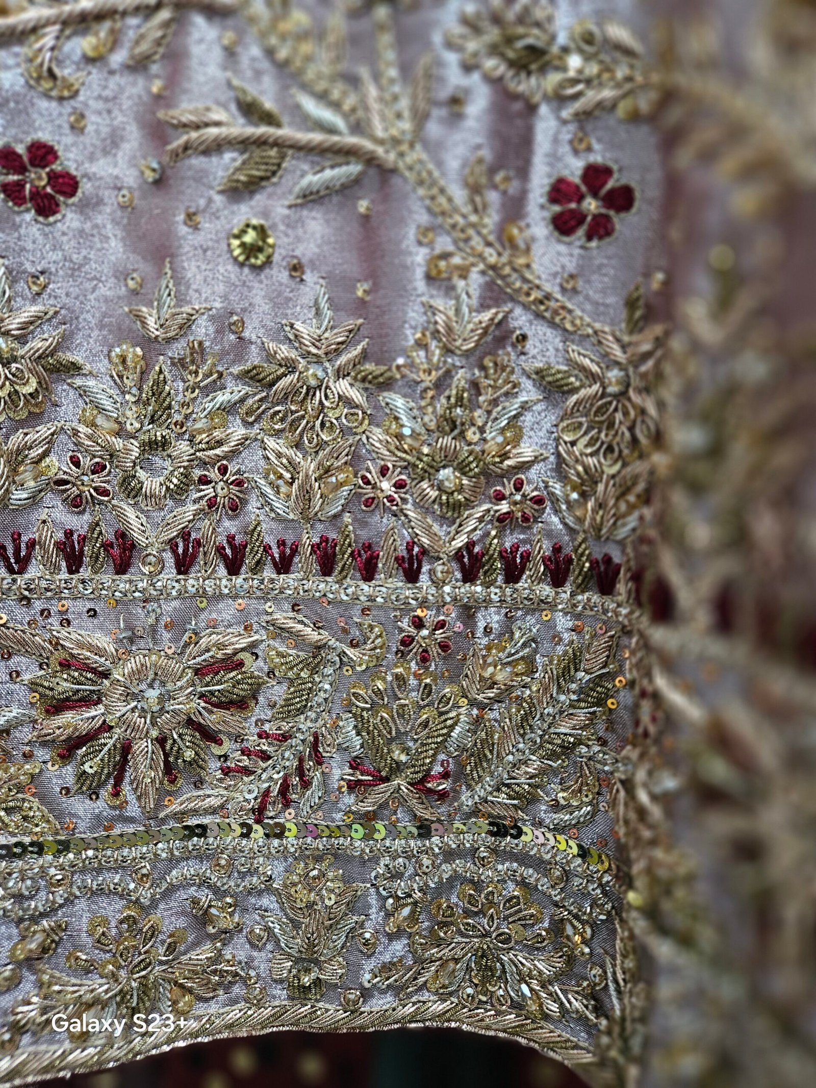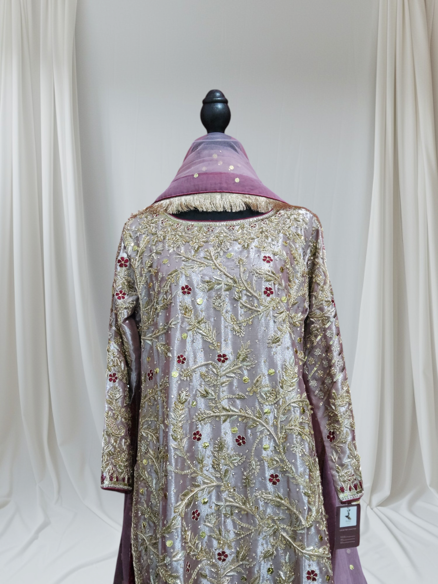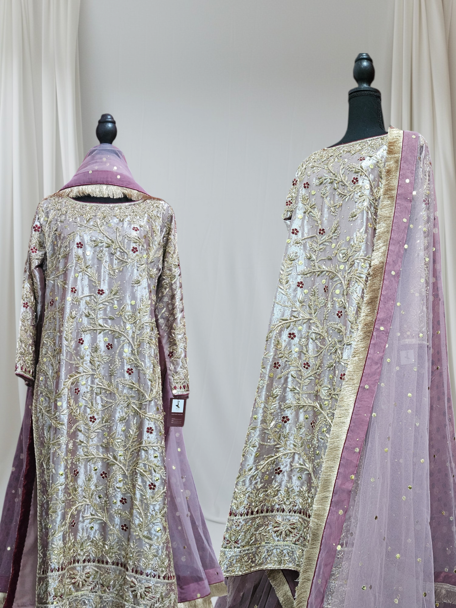 - Work: Hand-embellished with dabka, zardozi,naqshi & sequins.