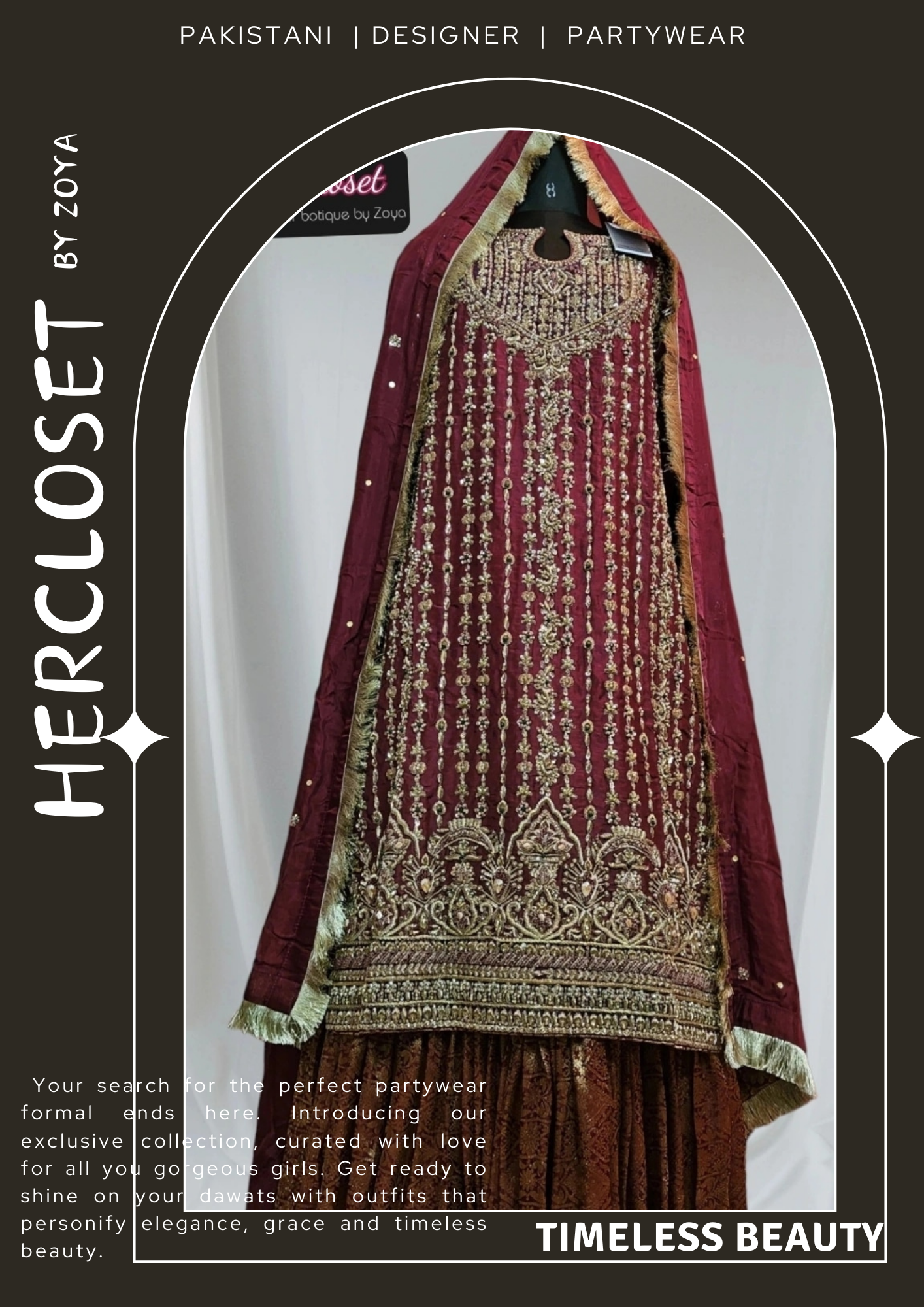 - Work: Hand-embellished with dabka, zardozi,naqshi & sequins.